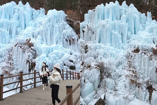 Eobi Valley, nestled between Yongmunsan and Yumyeongsan, hugs the slopes of Eobisan Mountain. In winter, the ice walls create a spectacular sight. It’s worth a visit.